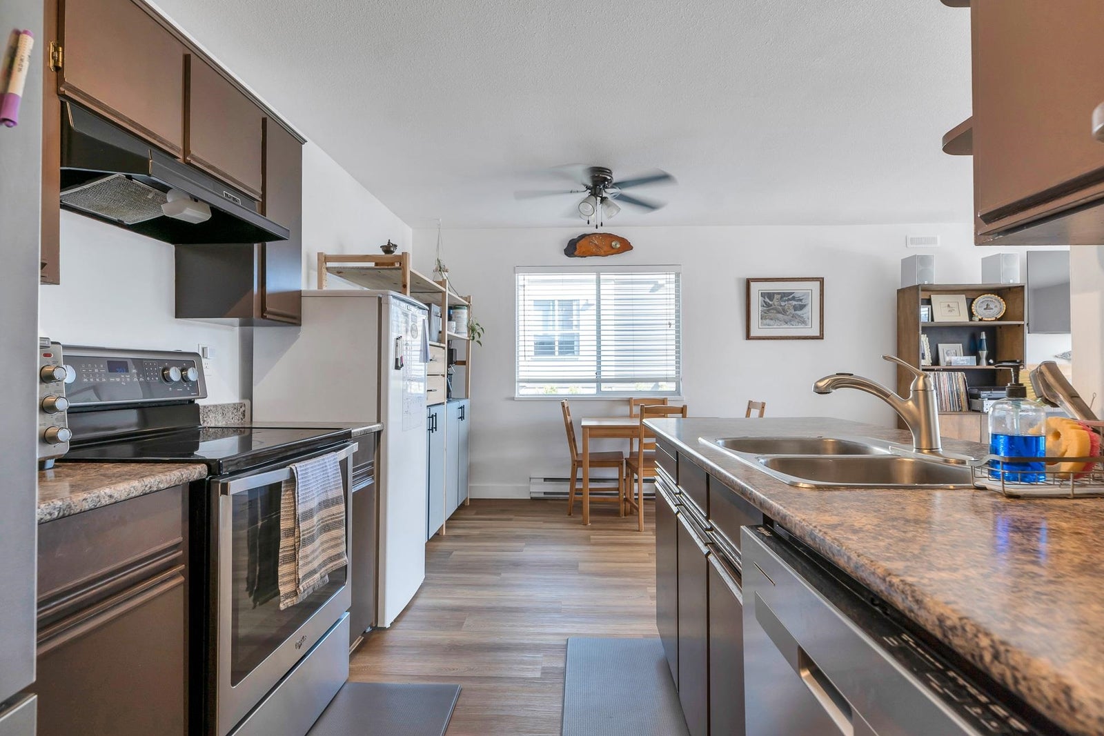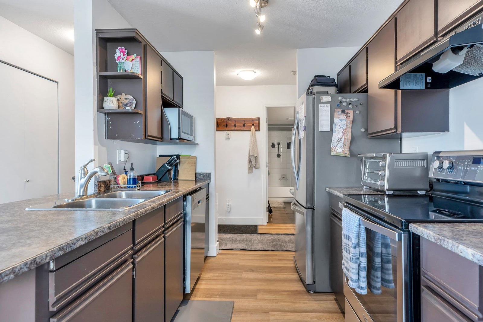 Welcome to The Gateway! This 2 bed/1 bath 960 sq ft corner unit is ideal for first time home owners or for a downsize. The numerous windows & a wrap around balcony provides lots of natural light & views to the east. The kitchen has S/S appliances, ample counter & cupboard space to meet all your cooking needs & a substantial eating area. The living space is spacious with a fireplace making it a cozy space to relax & entertain. The large primary bed has a walk through closet with access to the bathroom. The laundry rm has extra storage which adds to the convenience. This building is situated on a quiet cul-de-sac with easy access to the freeway & pedestrian cross walk for UFV. It is centrally located near restaurants, shopping & other amenities. Call today to make an appointment!