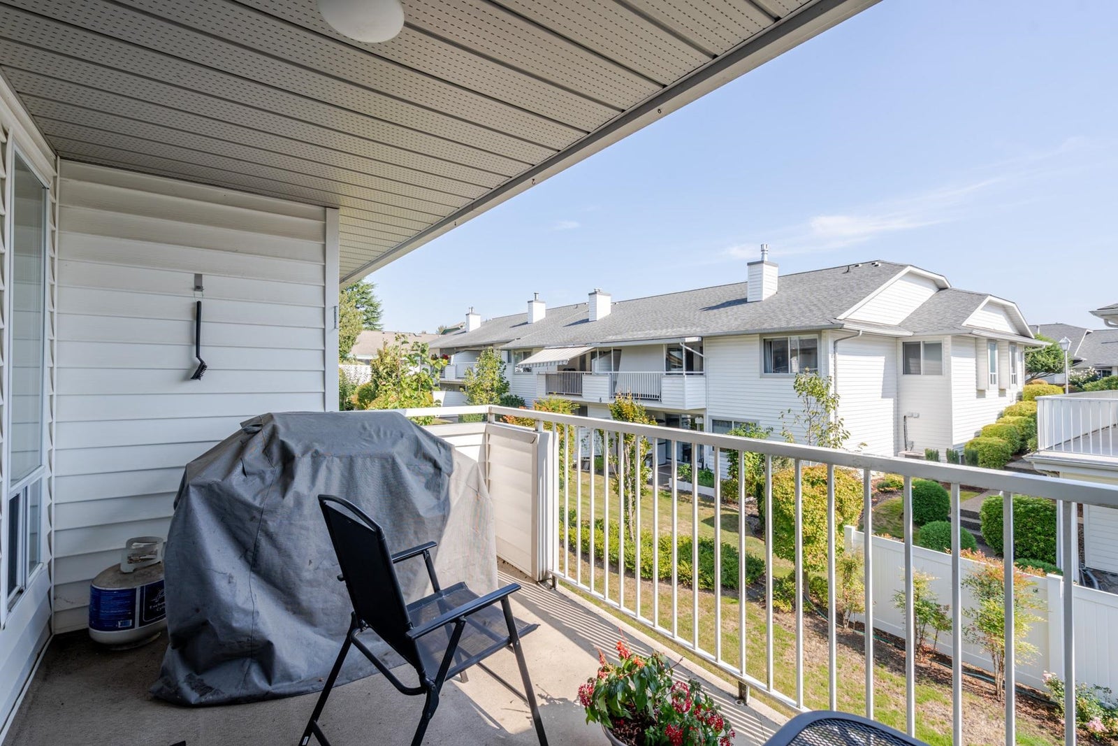 Glenview Meadows! This 2338 Sqft home features 3 bedrooms, 3 bathrooms & feels bright & spacious due to windows in the front & back. The kitchen was painted in the past year & the flooring was replaced 3 months ago. There is plenty of cupboard & counter space as well as an eating area & pantry. The living area leads to the balcony that overlooks the common space providing a quiet outdoor space to enjoy. There is plenty of room in the basement including a large rec room, bedroom & area for a workshop. There is a big storage rm as well as lots of closet space. The patio below leads out to the common green space. The A/C, hot water tank & furnace are only 3 years old as well as the washer & dryer. This complex is for those 55+ & is centrally located. It has a club house and a well run Strata.